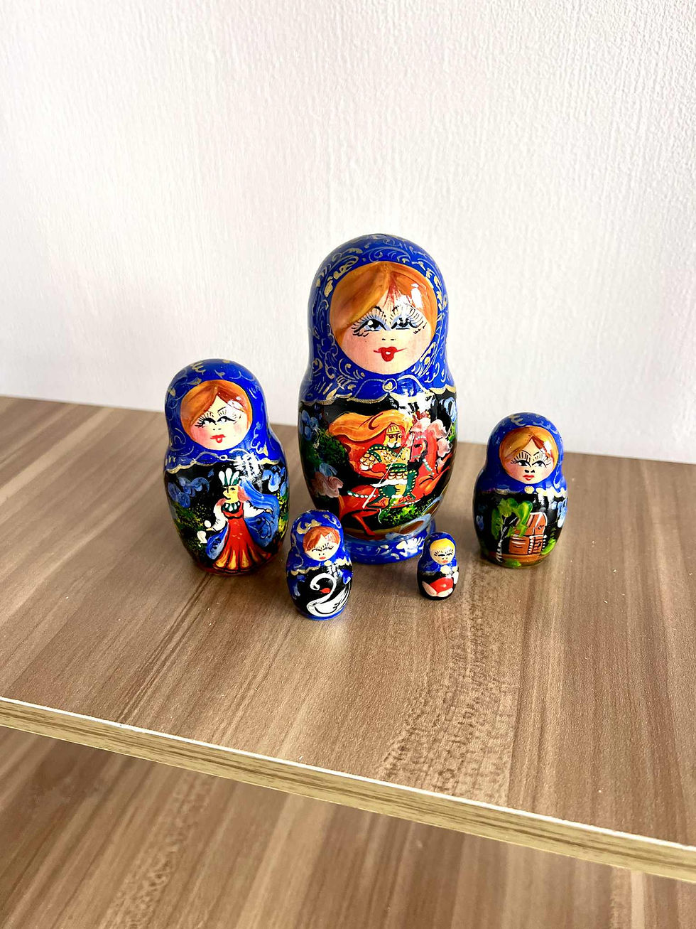 木作手工彩繪五層俄羅斯娃娃——,最受歡迎傳統故事為主題