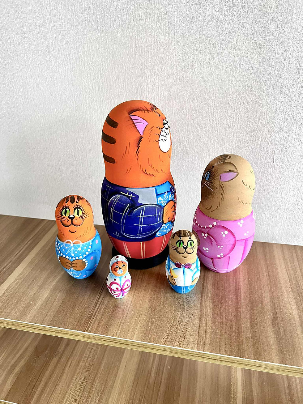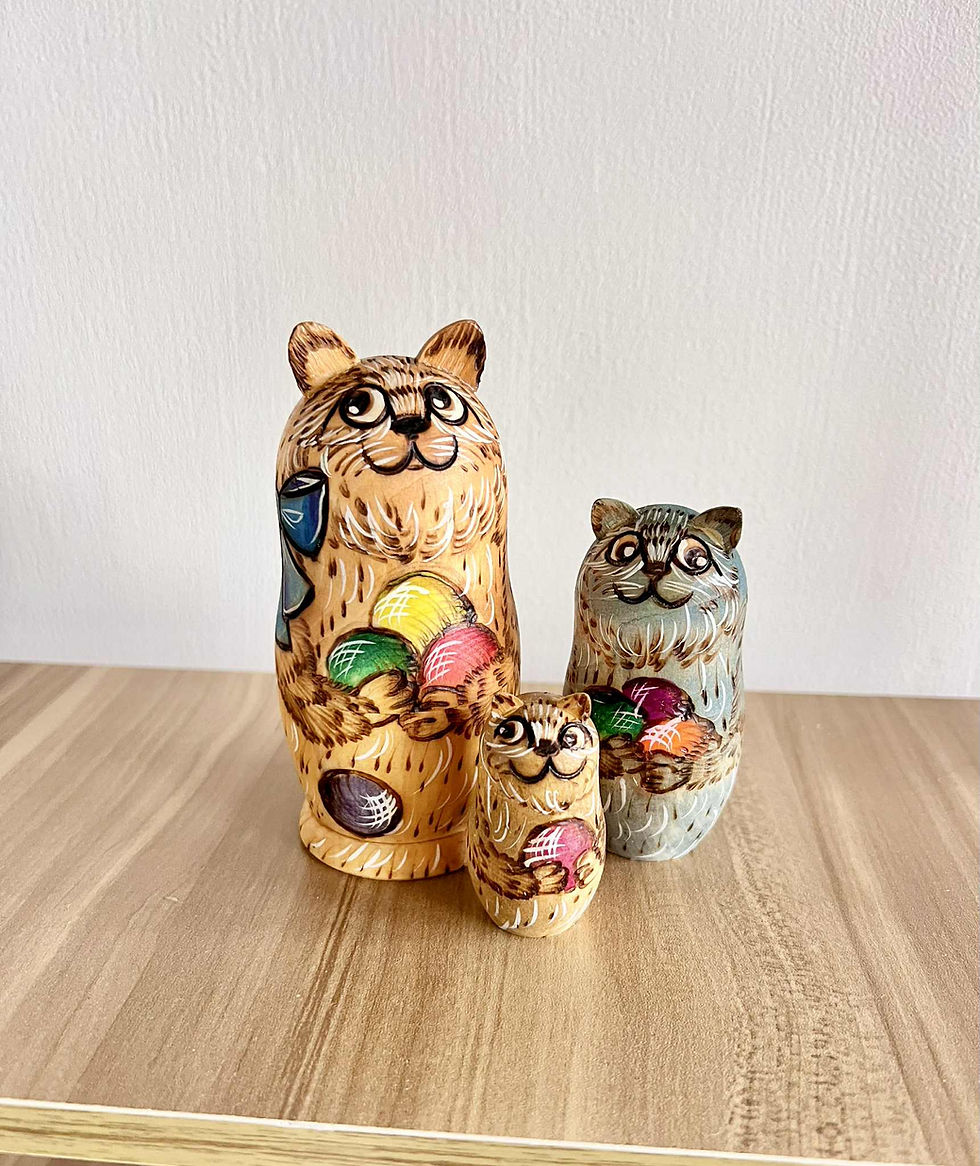 俄羅斯空運來台木作手工彩繪電燒三層貓咪俄羅斯娃娃